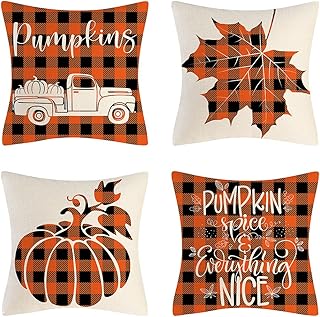 秋 感謝祭 枕カバー 18 x 18インチ 装飾格子縞 秋 パンプキン スロー 枕カバー カウチ アウトドア ファームハウス ソファ リビングルーム クッション ベッド ホームインテリア 4枚セット