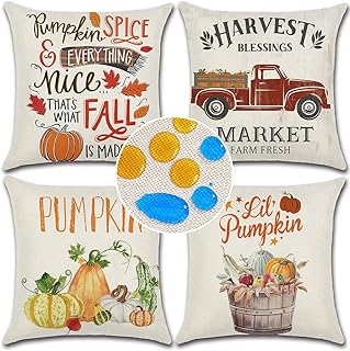 CDWERD 秋 感謝祭 枕カバー 18 x 18インチ パンプキン トラック 葉 秋 テーマ 農家 アウトドア スロー 枕カバー コットンリネンクッションカバー 秋のデコレーション用 4枚セット