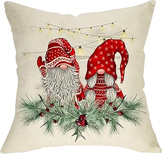Softxpp メリークリスマス スローピローカバー クリスマスノーム 装飾クッションケース 冬 ホリデー アウトドア ベリーデコレーション ファームハウス スクエア 枕カバー 装飾サイン ホームカウチ用 18 x 18インチ コットンリネン