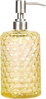 YunNasi ソープディスペンサーガラス シャンプーボトル ディスペンサー ガラス製 おしゃれ ステンレスポンプ ハンドソープ用 洗剤用 キッチンとバスルーム用 (黄色)