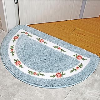 ラグマット ブルー 花柄 台所マット 滑り止め 玄関マット 半円形 フロアマット バスマット 40*60cm ずれない 掃除やすい 耐磨耗性 吸水 速乾 滑り止め 絨毯 マイクロファイバー 入り口マット ドアマット ベッドルーム