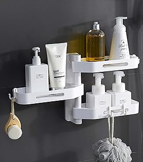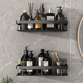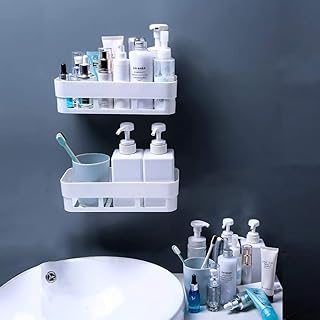 AGULIN 浴室ラック シャワーラック お風呂ラック バスルームラック 壁掛け 強力粘着固定 水切り キッチン用ラック 洗面所/調味料 収納棚 台所棚 バス用品 収納ラック(コーナーラック,2個)
