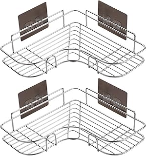 Tengfey 浴室ラック 収納ラック 強力粘着固定 (2個)【在庫掃除セール! 超安い!品質にはぜひご安心ください!】三角コーナー シャワー 浴室用/キッチン 調味料 水切りラック 壁掛け棚 吊り下げ … (ステンレス*2)