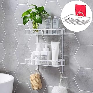 AGULIN 浴室用ラック バスルームラック お風呂ラック シャワーラック 壁掛け 強力粘着固定 水切り キッチン用ラック 洗面所/調味料 収納棚 台所棚 バス用品 収納ラック(ホワイト, 1個)