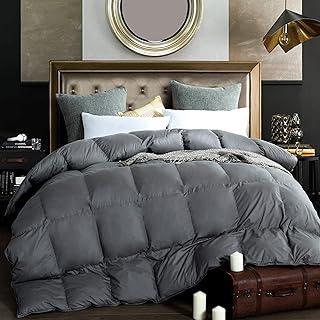 Royoliving プレミアムシルバーダウン掛け布団 キングサイズ オールシーズン ミディアム 暖か ダークグレー チャコールグレー 100%エジプト綿 カバー ダウンプルーフ羽毛布団インサート コーナータブ付き 60オンス