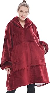 オーバーサイズ パーカー ブランケット スウェットシャツ 快適 シェルパ ジャイアント ウェアラブルブランケット ギフト 大人 男性 女性 ティーンエージャー 妻 ガールフレンドに エクストラロング ワイン