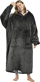 オーバーサイズ マイクロファイバー フリース シェルパ ウェアラブル ブランケット パーカー - 超ソフト 暖かい ベルベットのような質感 フラシ天 フード付きブランケット スウェットシャツ ブランケット ポケット付き (ダークグレー、大人用)