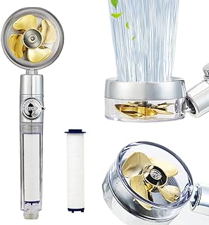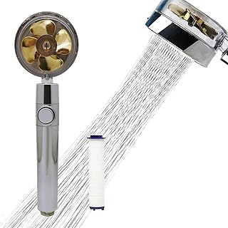 ハンドヘルド ターボチャージド 圧力プロペラシャワー 調節可能な水流とフィルター付き - アップグレードプロペラ駆動 高圧シャワーヘッド 360度回転 一時停止スイッチ付き (ブループレミアムスーツ)