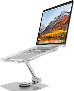 デスク用調節可能なノートパソコンスタンド ノートパソコン用コンピュータースタンド アルミクールデザイン 高さと視野角調整可能 360度回転 MacBook Air Pro その他のノートブックに対応 シルバー